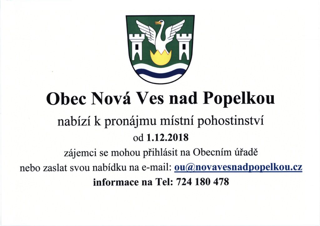 Obec Nová Ves nad Popelkou nabízí k pronájmu místní restauraci